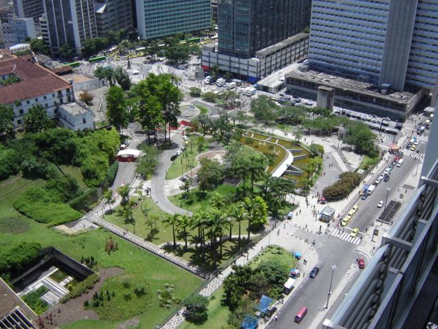 I'm researching my archive of pictures because our beloved Mayor of Freeland asked for more Roberto Burle Marx, a very famous brazilian landscaping architect. There are below a few images with views of Burle Marx's Gardens here in Rio, hope to find more in next future,and as "special gift" I found a portrait of the master at work in his atellier, as presented by The National Geographic Magazine in 1954! Here you see a detailed image of Largo da carioca Subway Station, inaugurated in 1979 with a fabulous rooftop garden created by Roberto Burle Marx. Rooftop is exactly at center of the picture, with a low white line of its concrete wall, and a pool with small fountains and grassy tapestries above it. The gardens spread to the left side of this picture, in direction of Convento de Santo Antônio. Two curiosities: [i] this picture was taken from PETROBRÁS Building [see next picture]; [ii] can you see at right background a buildings with grey-blue colors and horizontal lines with windows ? It is the CEF building, where I gave my classes of post-graduation last year, and will return for more this year [WOW, cash again, let's go shopping!].