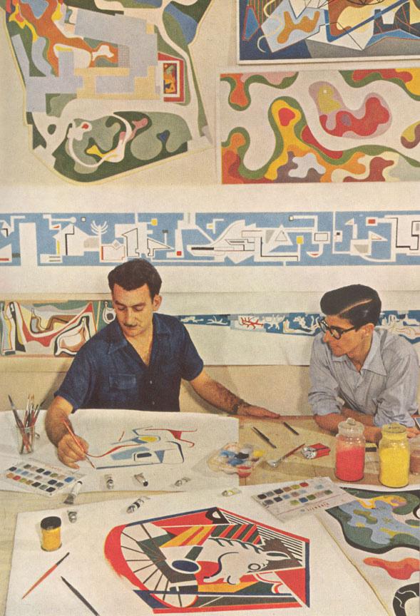 And last, but not least, a 1954 portrait of younger Roberto Burle Marx [at left of the picture], surrounded by panels giving a very good idea of his style - I'm sure Fredfree will love this splash of 1950s Brazilian Modernism!