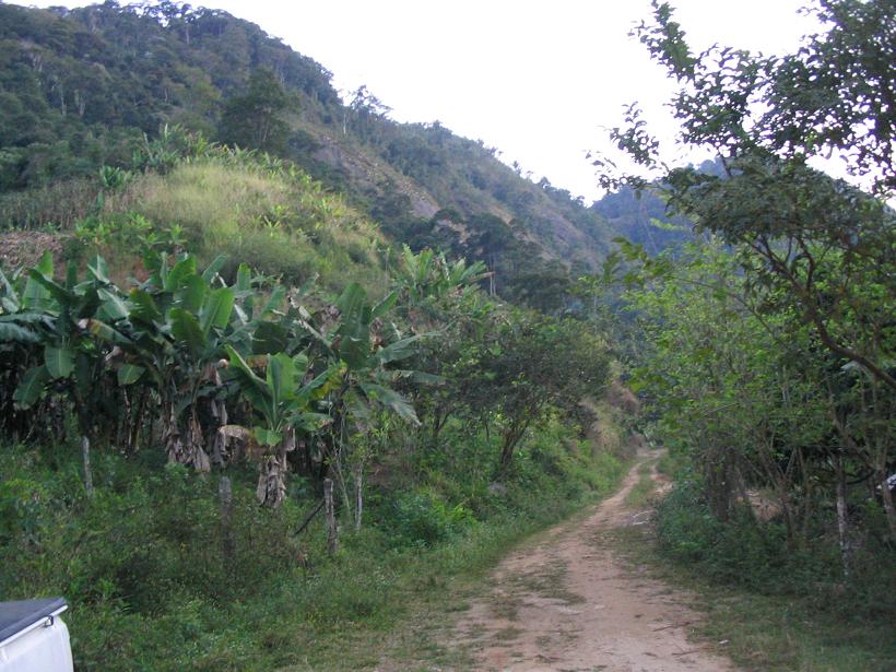 Now with a picture from one Banana Tree Farm in the ouskirts of Three Peaks State Park: please note that in Brazil it isn't usual to plant thousands and thousands of banana trees side by side, as it would be done with orange or lemon trees. Here people plant a limited lot of banana trees among other trees from original forest: see these trees at right of the picture, while banana trees are at left, separated by an internal gravel road from this farming area - oh, yes, that white thing at bottom left of the picture is the truck from the firm I use to go to all places inside PETP. Making this, they create an interesting landscape of semi-cultivated farming and old wooded areas. At left background of the picture you see the famous brazilian rain forest on top of a small hill, preserving it from erosion: I always felt confidence about our people and the good sense they use on their lives, which can be observed in this picture.