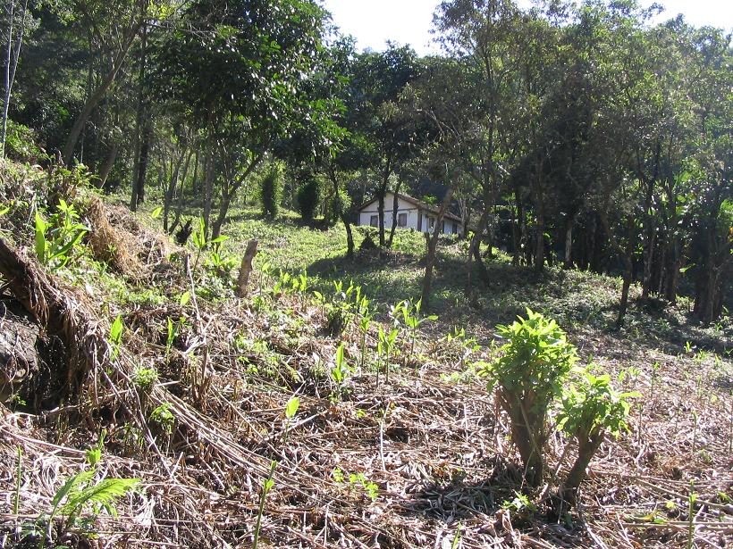 This is a small farm in the outskirts of PETP : the house is in the background, surrounded by cultivated fruit trees, while in foreground we can see a recently open field for new plantations. But, as common in this area, this farm is of modest size and its plantations aren't in big scale [eventually, its owner is a person from Rio de Janeiro, trying to feel a taste of rural life on small scale]. Fortunely it was a sunny day, so you can see the colors and masses without shadows there.